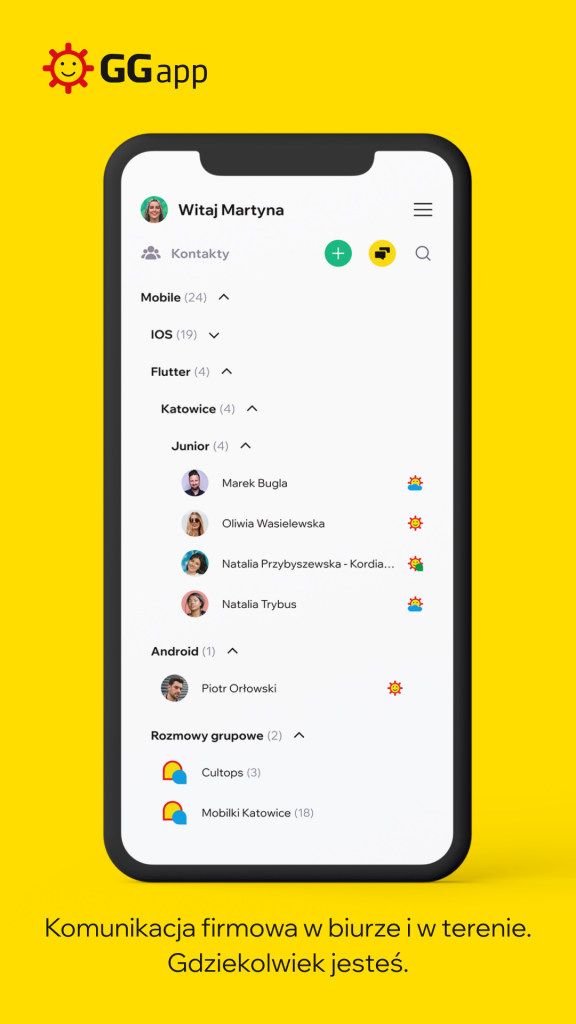 GGapp doskonale sprawdzi się w komunikacji wewnętrznej firmy, jak i do kontaktów zewnętrznych.